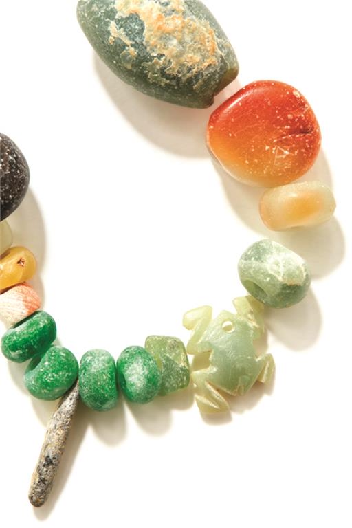 | Περιδέραιο με λίθινες χάντρες, η μία σε μορφή βατράχου. Νάξος. 3300-2700 π.Χ. |