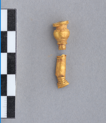 Στο εσωτερικό της εντυπωσιακής μαρμάρινης, με παράσταση αμαζονομαχίας, σαρκοφάγου βρέθηκε ένα χρυσό δακτυλίδι με έγγλυφη προτομή Αθηνάς στη σφενδόνη του και χαραγμένο γύρω της το όνομα της κατόχου του στην ..."αφιερωματική" δοτική (ΕΛΛΑΔΙ).